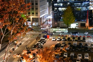 水前寺公園やメインストリート通町筋、交通センター、再開発進む熊本駅前などを丹念に結ぶ熊本市電。政令指定都市だけに、夜でも人通りが多く、クリスマスシーズンには煌びやかなイルミネーションで彩られる。(2025.12.1)