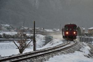 東海地方に属しているので温暖なイメージのある岐阜県だが、県の北西部は雪雲が流れてきて、比較的よく雪が降る。長良川鉄道の末端区間・美濃白鳥以北も、冬には積雪がよく見られるところだ。奥美濃まで足を延ばして、雪景色を楽しんだ。